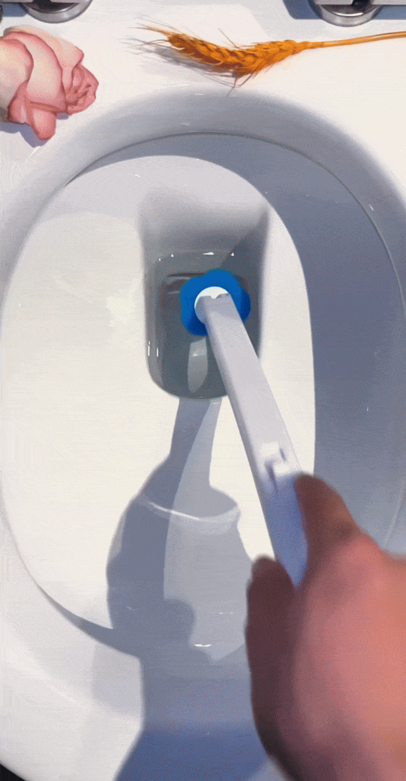 Doppa borsthuvudet i toan och borsta runt, smutsen löses upp direkt utan att spridas.