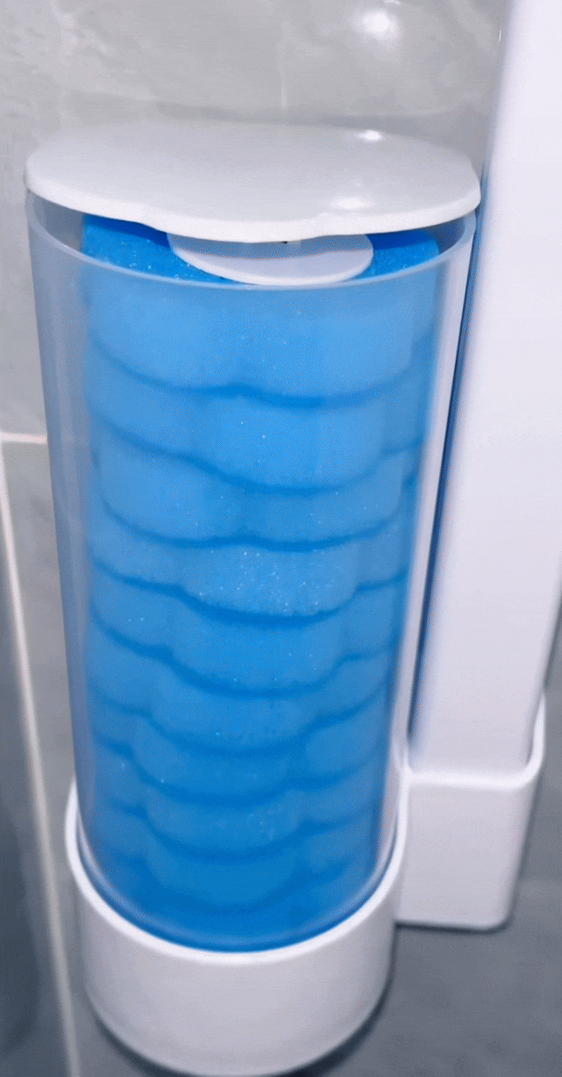 Varje borsthuvud innehåller antibakteriellt skum som smälter i vatten och frigör rengöringsämnen som tar bort smuts och lukt.